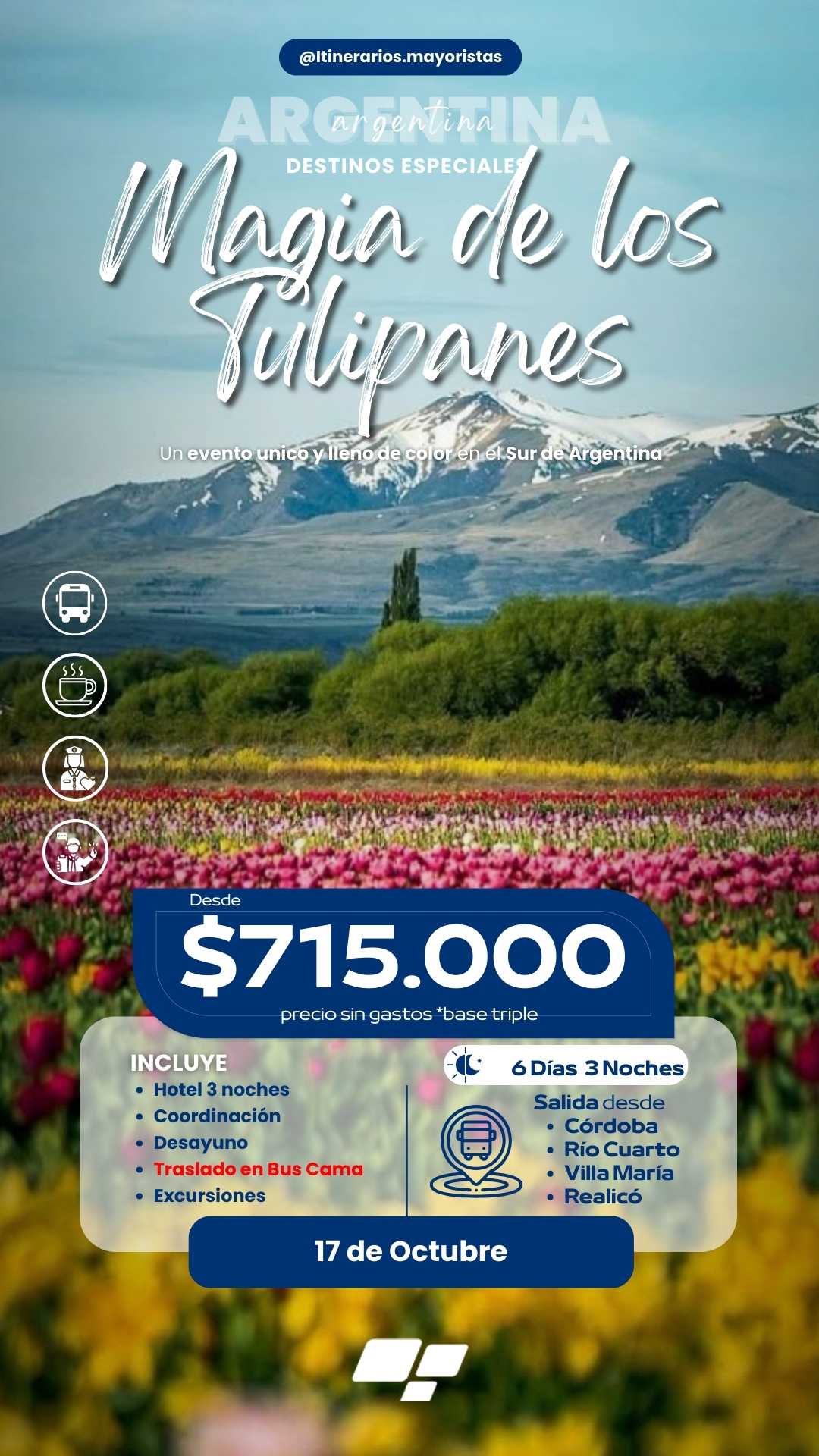 En octubre, no te puedes perder los campos de tulipanes en flor. Este espectáculo de color es impresionante y ofrece una excelente oportunidad para tomar fotografías.